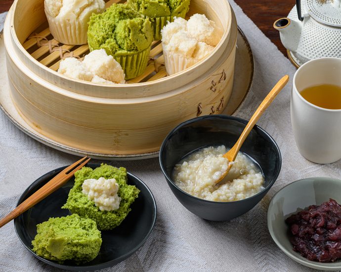 ソルガムきび粉の抹茶蒸しパン ~ソルガムきび甘酒添え~...